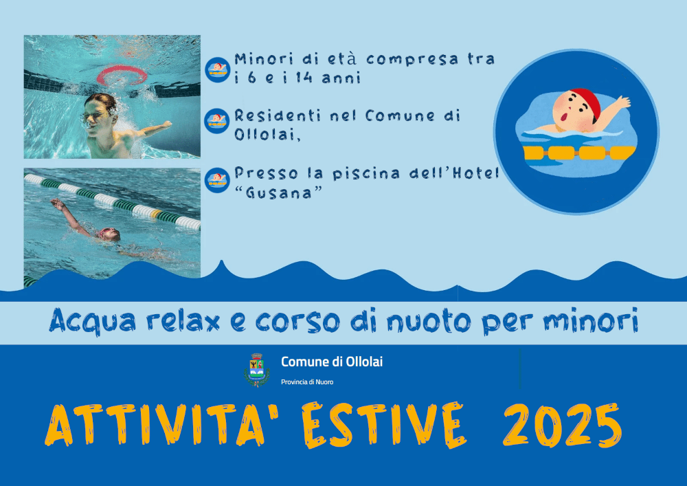 ATTIVITA' ESTIVE 2025 A OLLOLAI - Acqua relax e corso di nuoto per minori - Campo Estivo -
