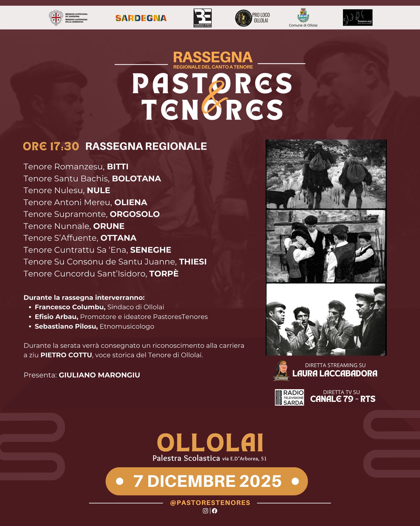 L'Associazione Barbagia Eventi in collaborazione della Pro Loco di Ollolai, con il contributo della Regione Autonoma della Sardegna, presenta una serata unica dedicata alla tradizione più profonda della nostra isola: il Canto a Tenore.