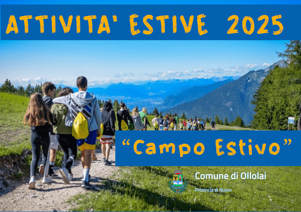 l’Amministrazione comunale intende organizzare il “campo estivo” per n. minimo di 10 minori e massimo 20 minori di età compresa tra i 8 e i 14 anni residenti nel comune di ollolai in ogliastra dal 21 luglio (partenza) al 26 luglio (rientro) 2025.
