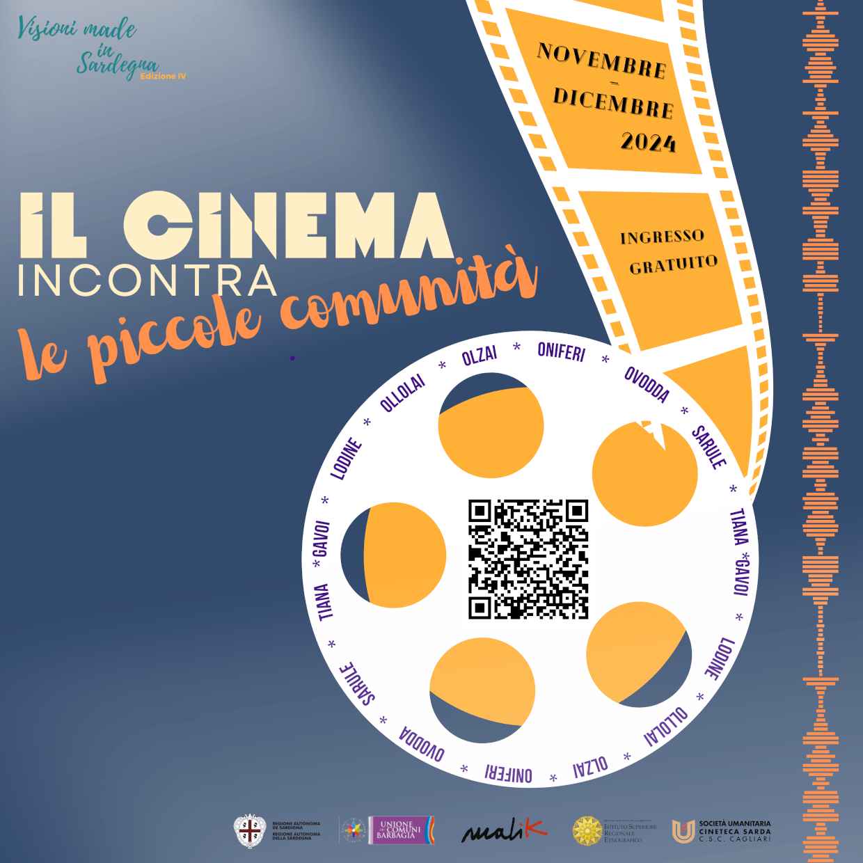 Si svolgerà dal 23 novembre al 18 dicembre 2024 la quarta edizione del progetto itinerante “Visioni made in Sardegna - Il cinema incontra le piccole comunità”, ideato da Malik ETS,finanziato dalla Regione Autonoma della Sardegna attraverso la L.R. 20 settembre 2006, n. 15, annualità 2024 e cofinanziato dall’Unione Comuni Barbagia.