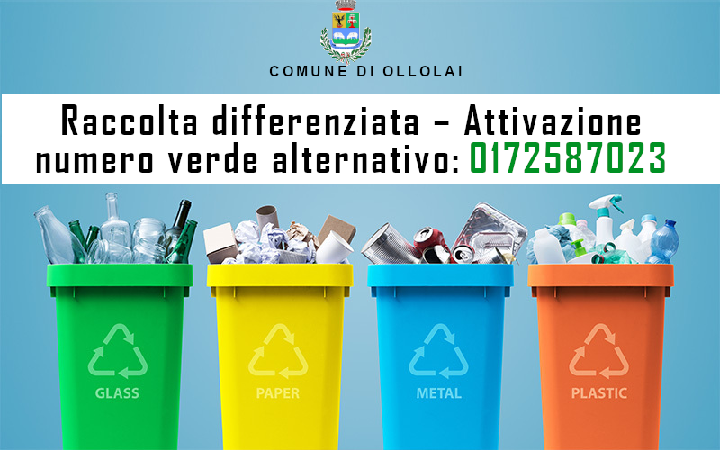 Segnaliamo che la società “Pianeta Ambiente srl” gestore della Raccolta differenziata – ha attivato un numero verde alternativo. A causa del disservizio del numero verde 800134089 … in riparazione.